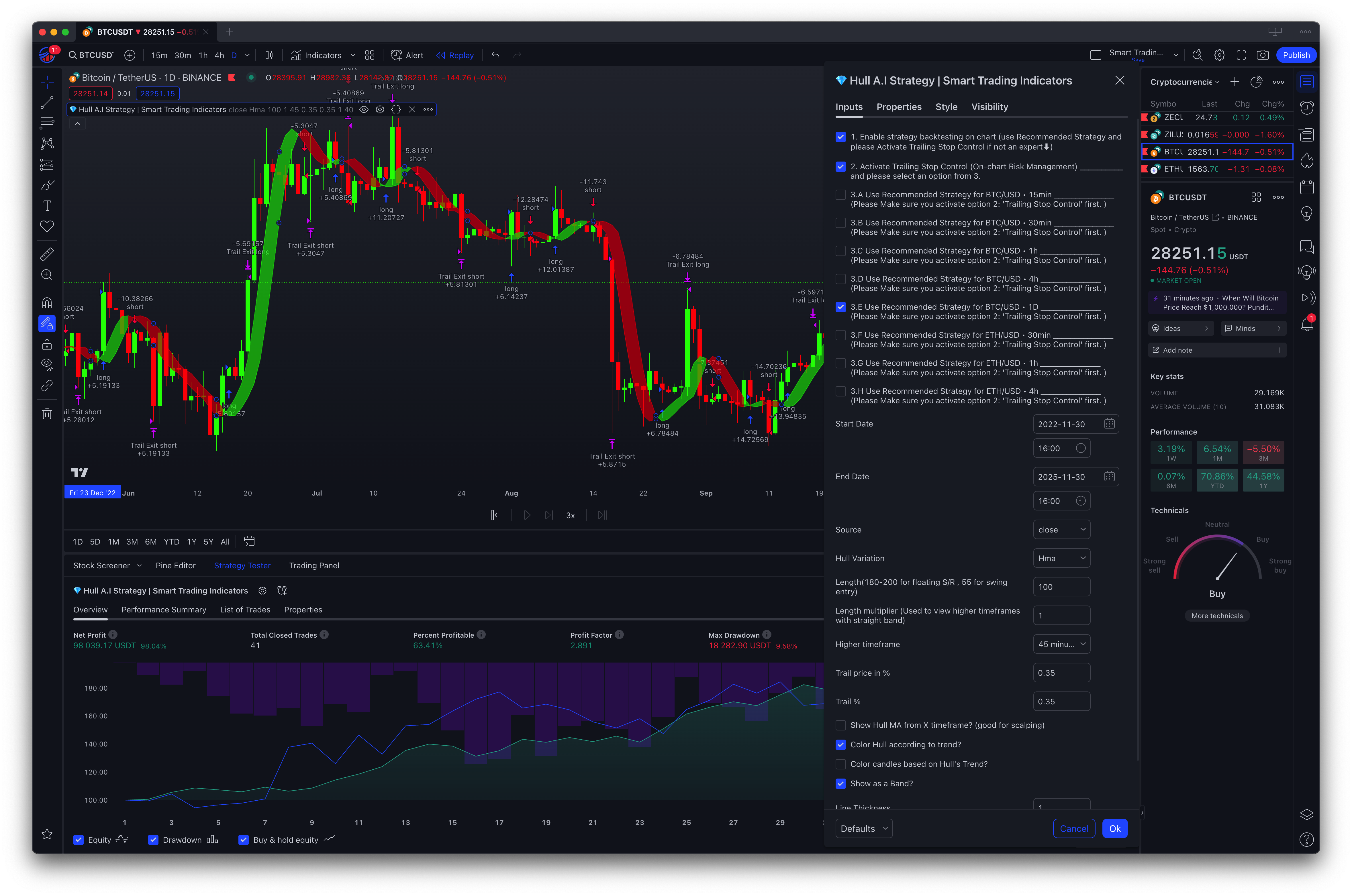# BTCUSD - 1D - 98.04% (Hull)